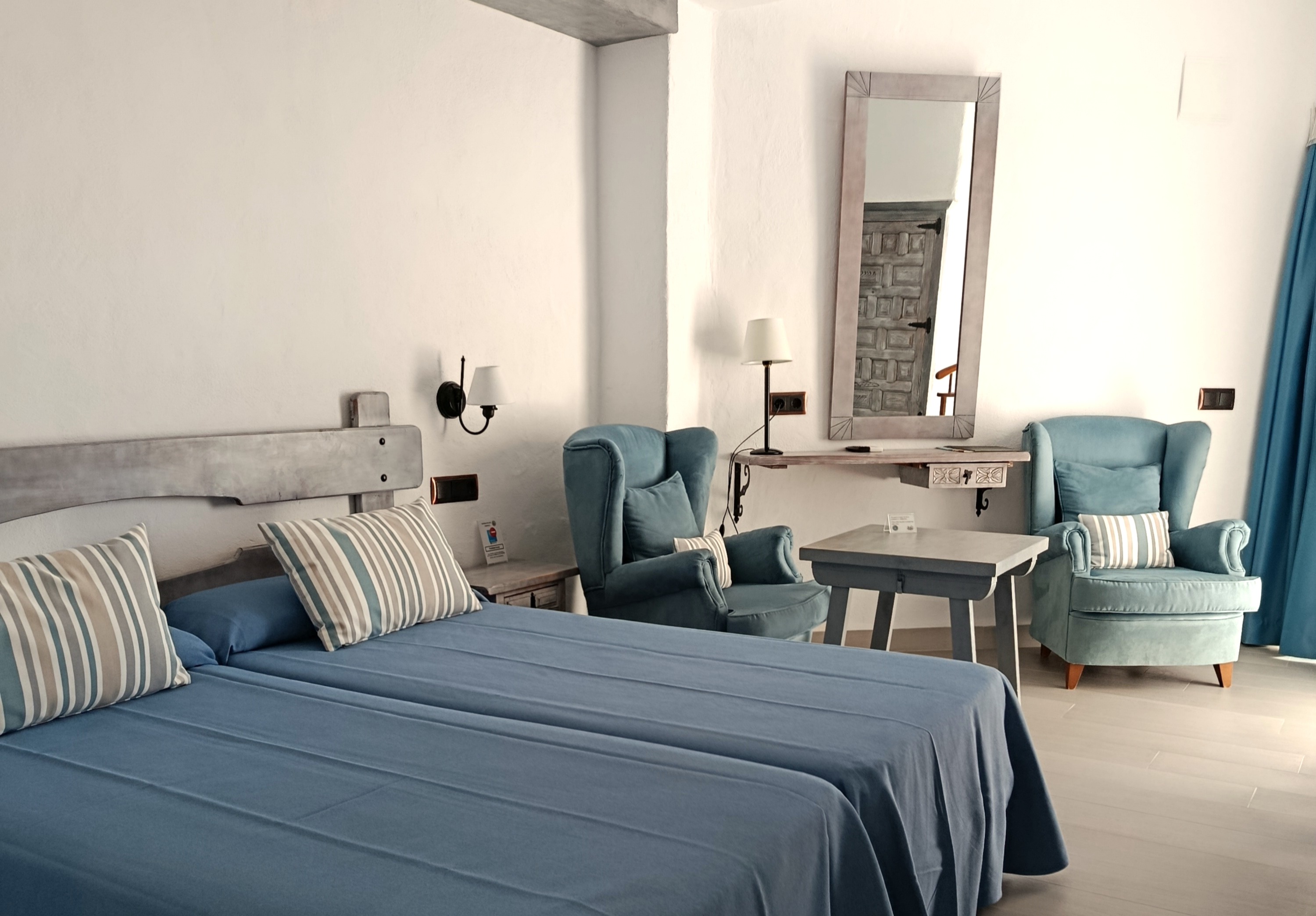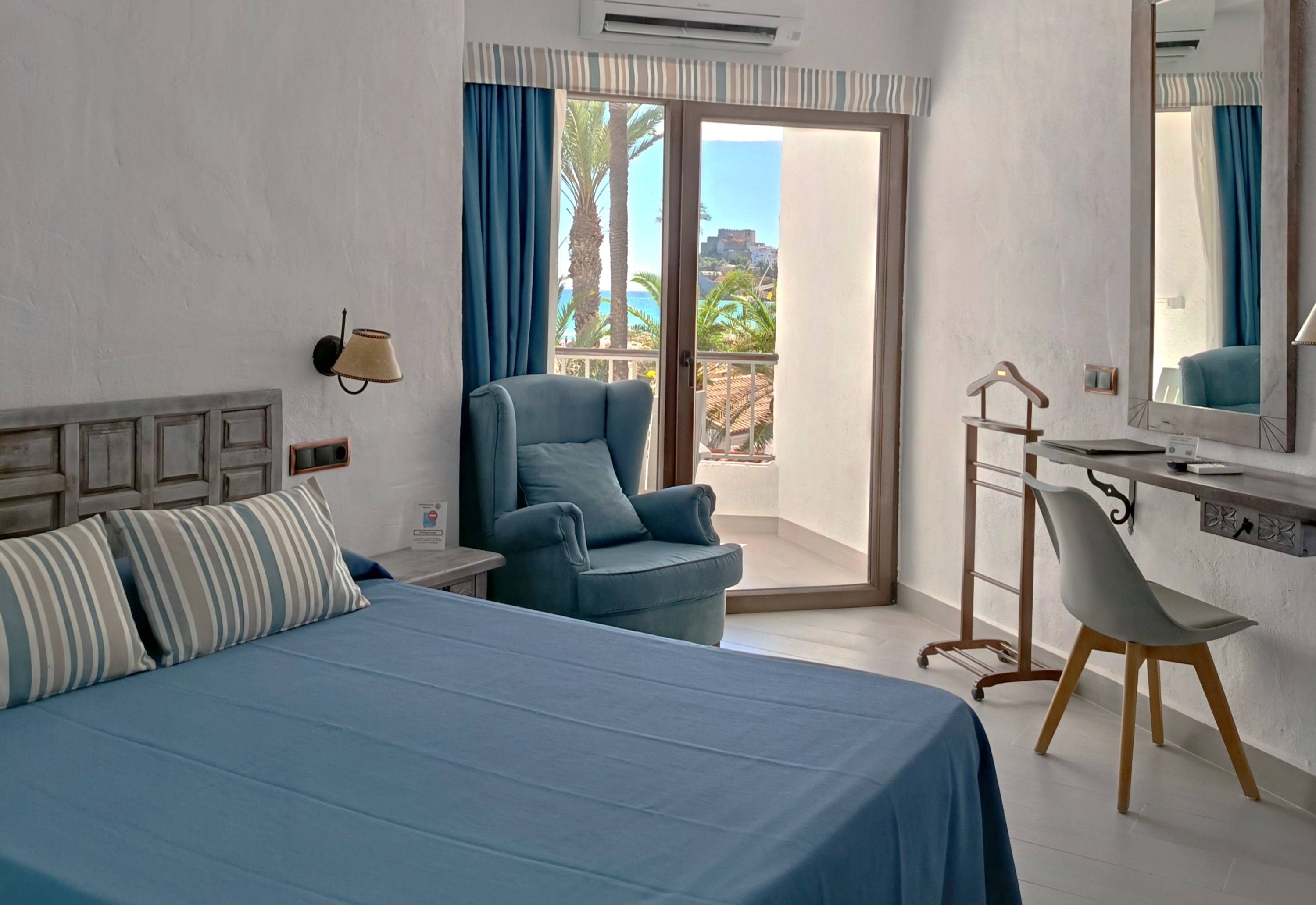 Son 10 habitaciones en total. Tienen una superficie media de 22-26m cuadrados con 2 camas de 90x190 cm o matrimonio y baño completo con ducha, disponiendo todas de terraza y vista frontal a la playa y castillo.